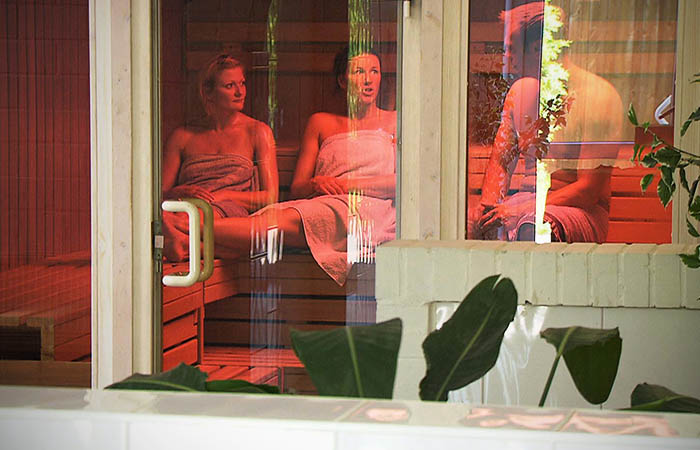 In unserem Saunabereich haben Sie die Wahl zwischen einer finnischen Sauna (90°C, 15% Luftfeuchtigkeit) und einer Biosauna mit Farb- und Duftstofftherapie (60°C, 30% Luftfeuchtigkeit).